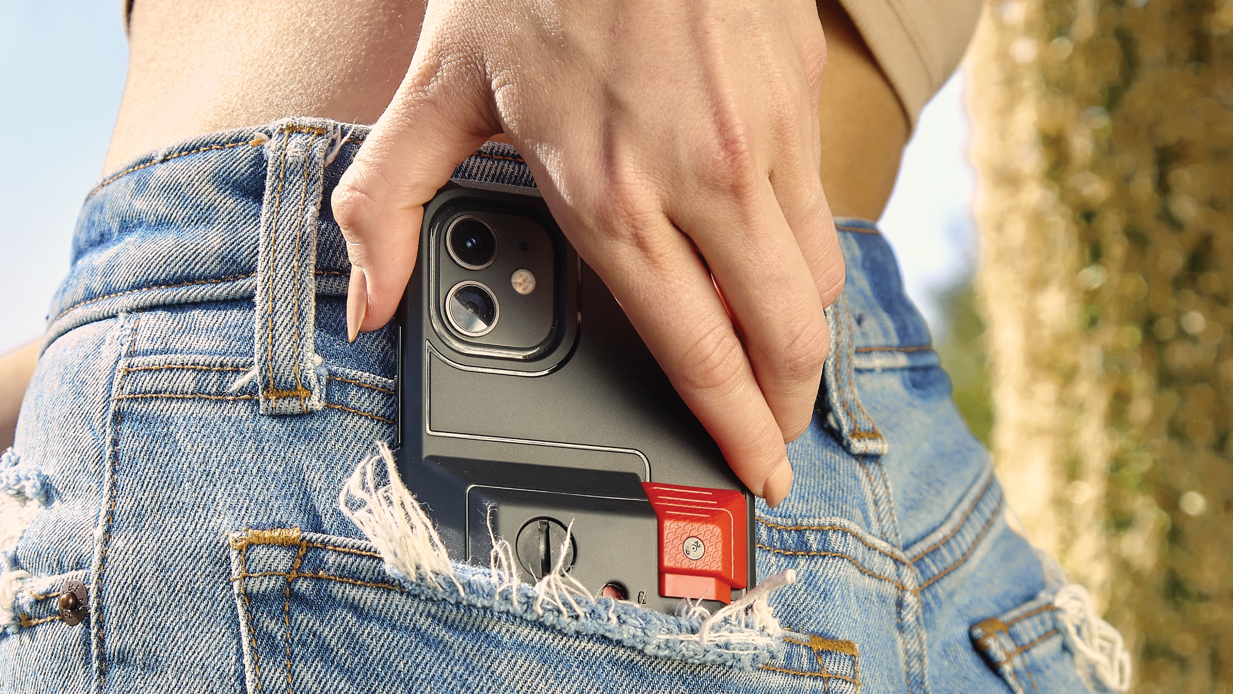 The first ever shock-proof phone case with a built-in sprayer.